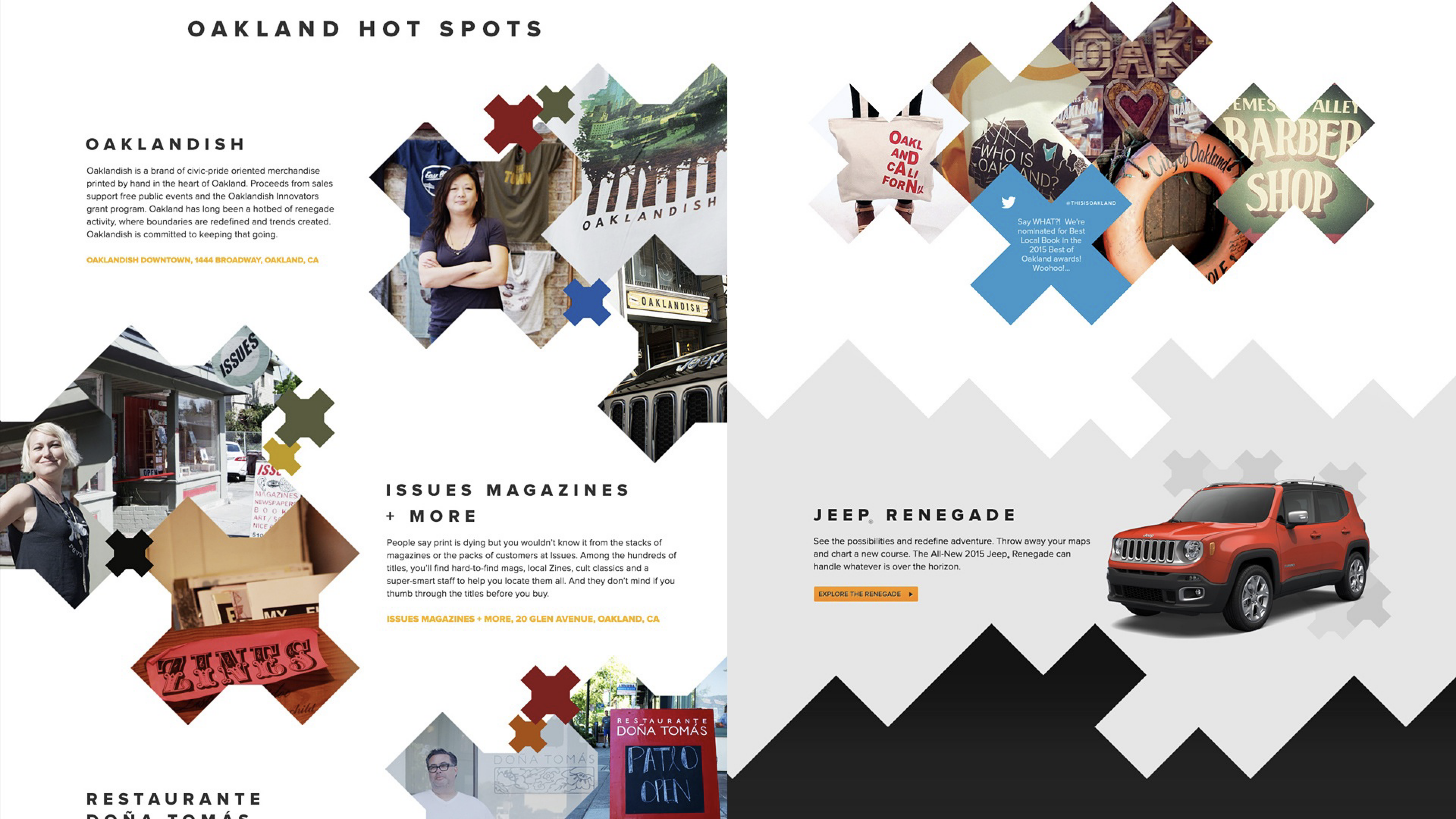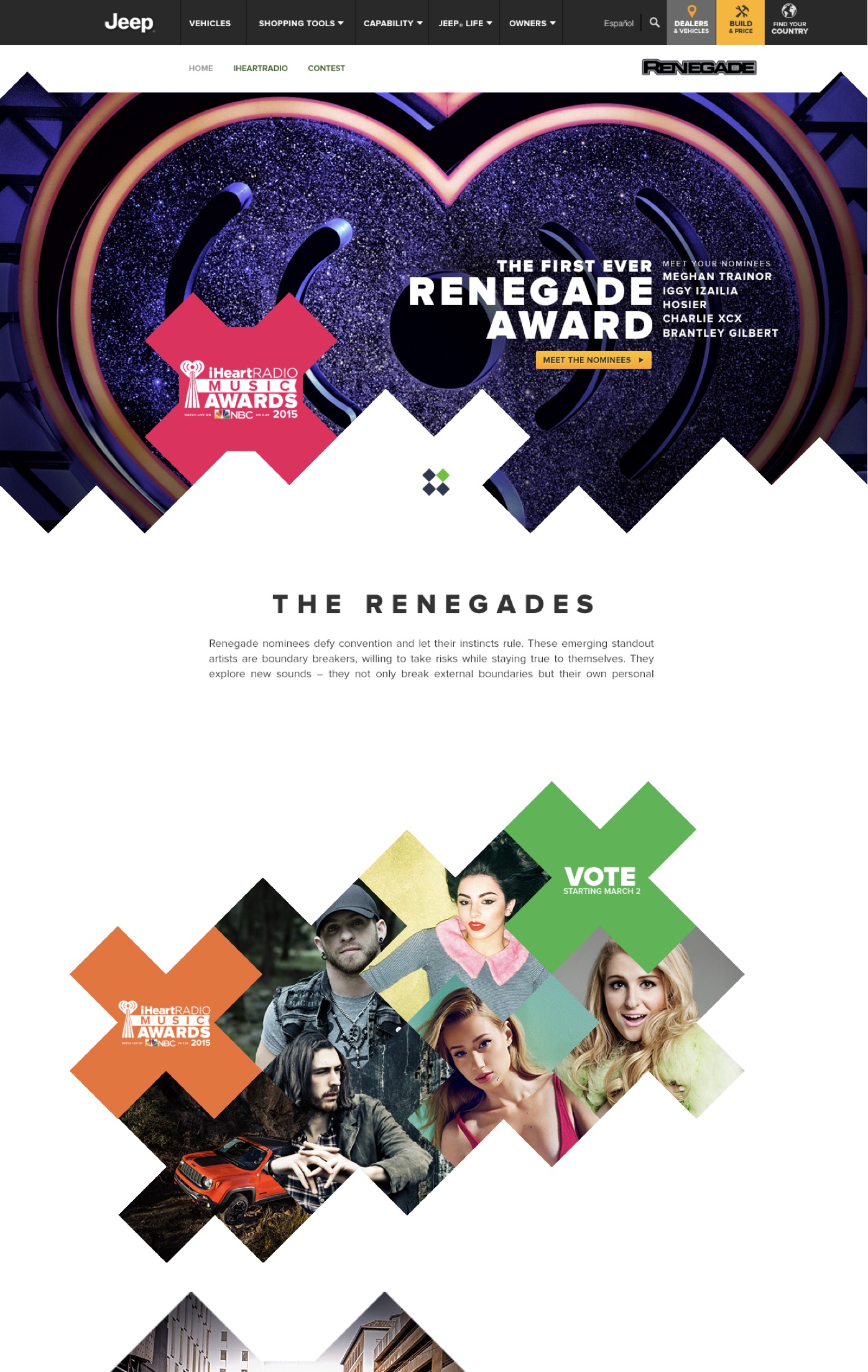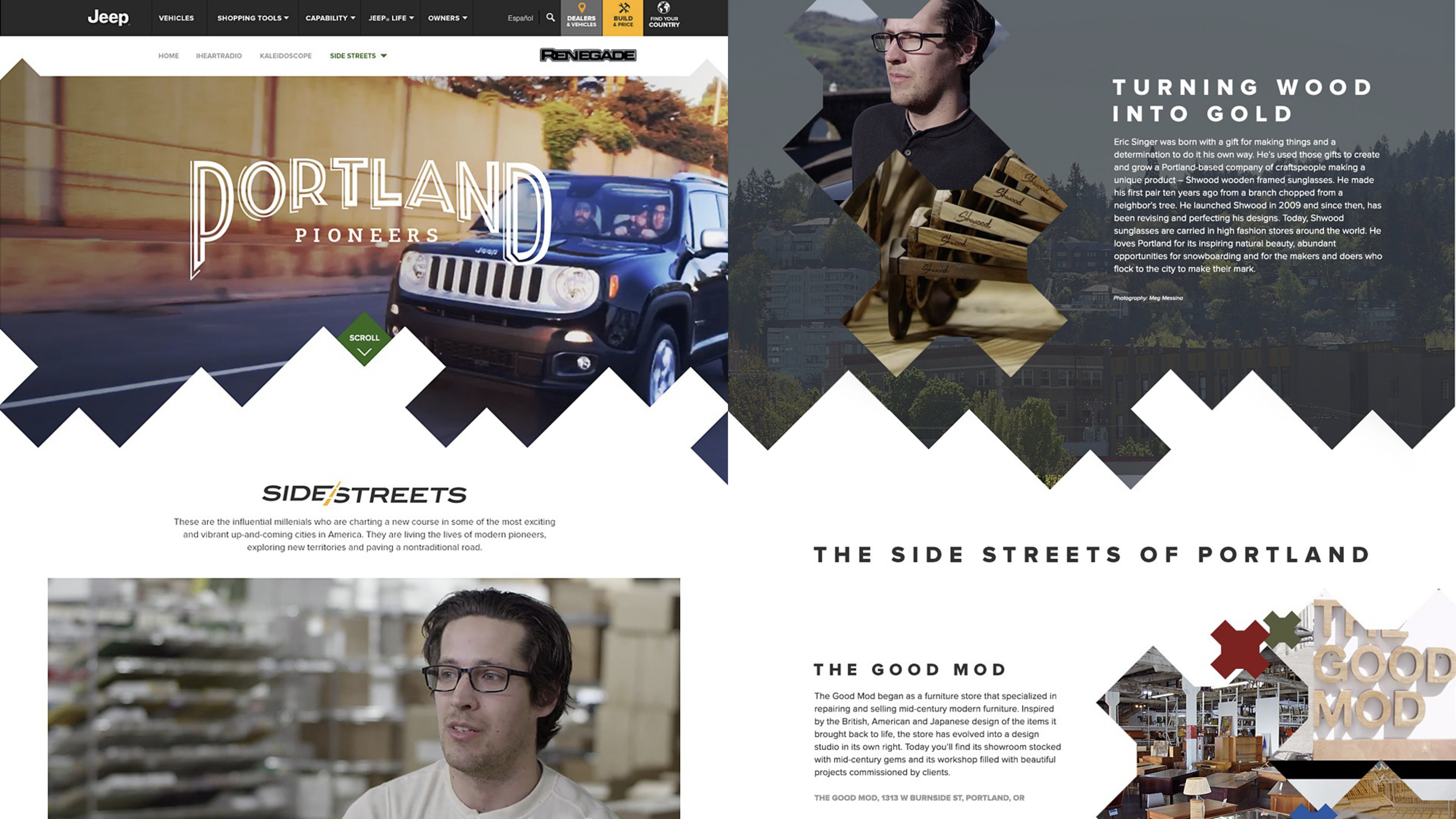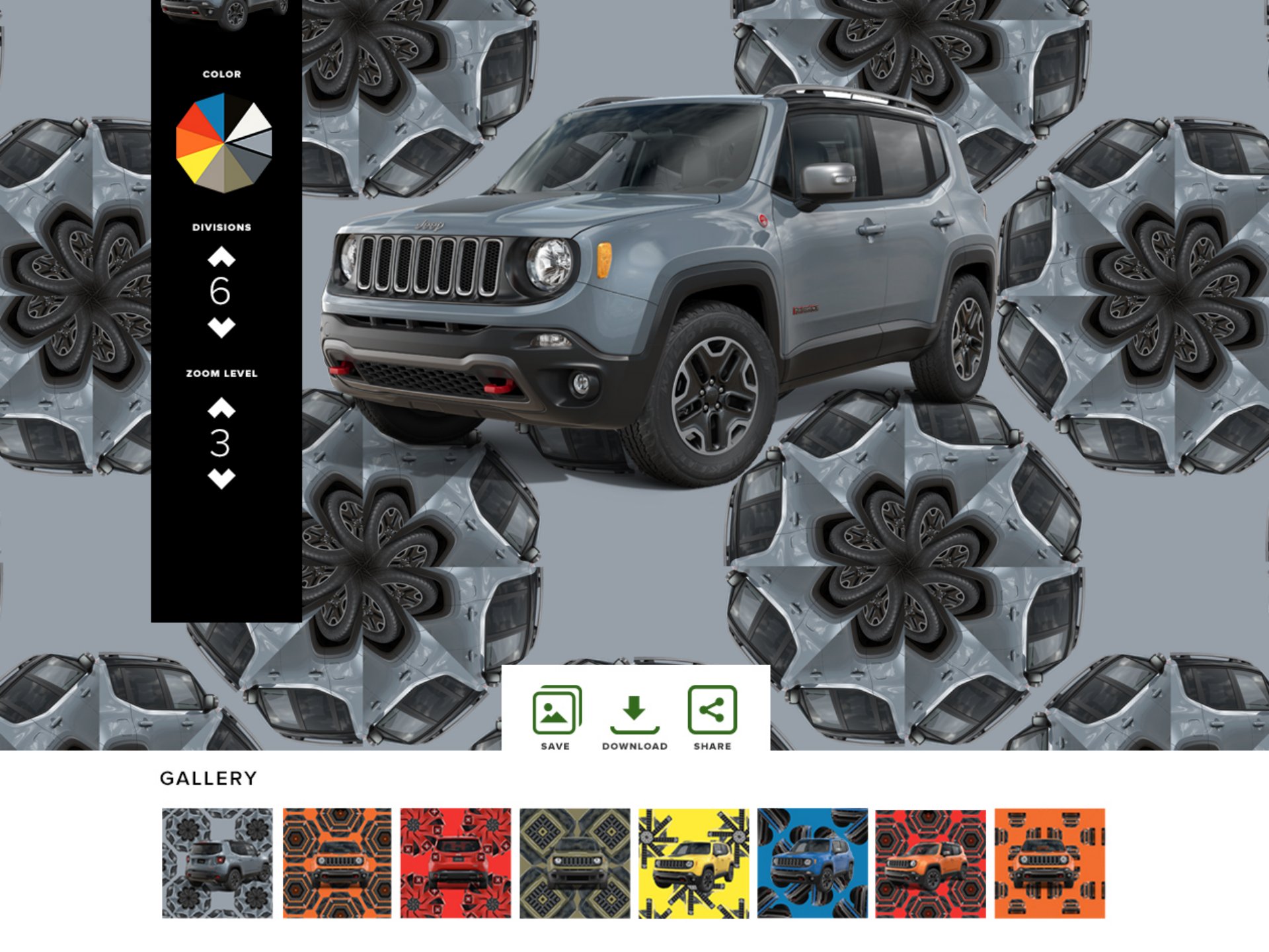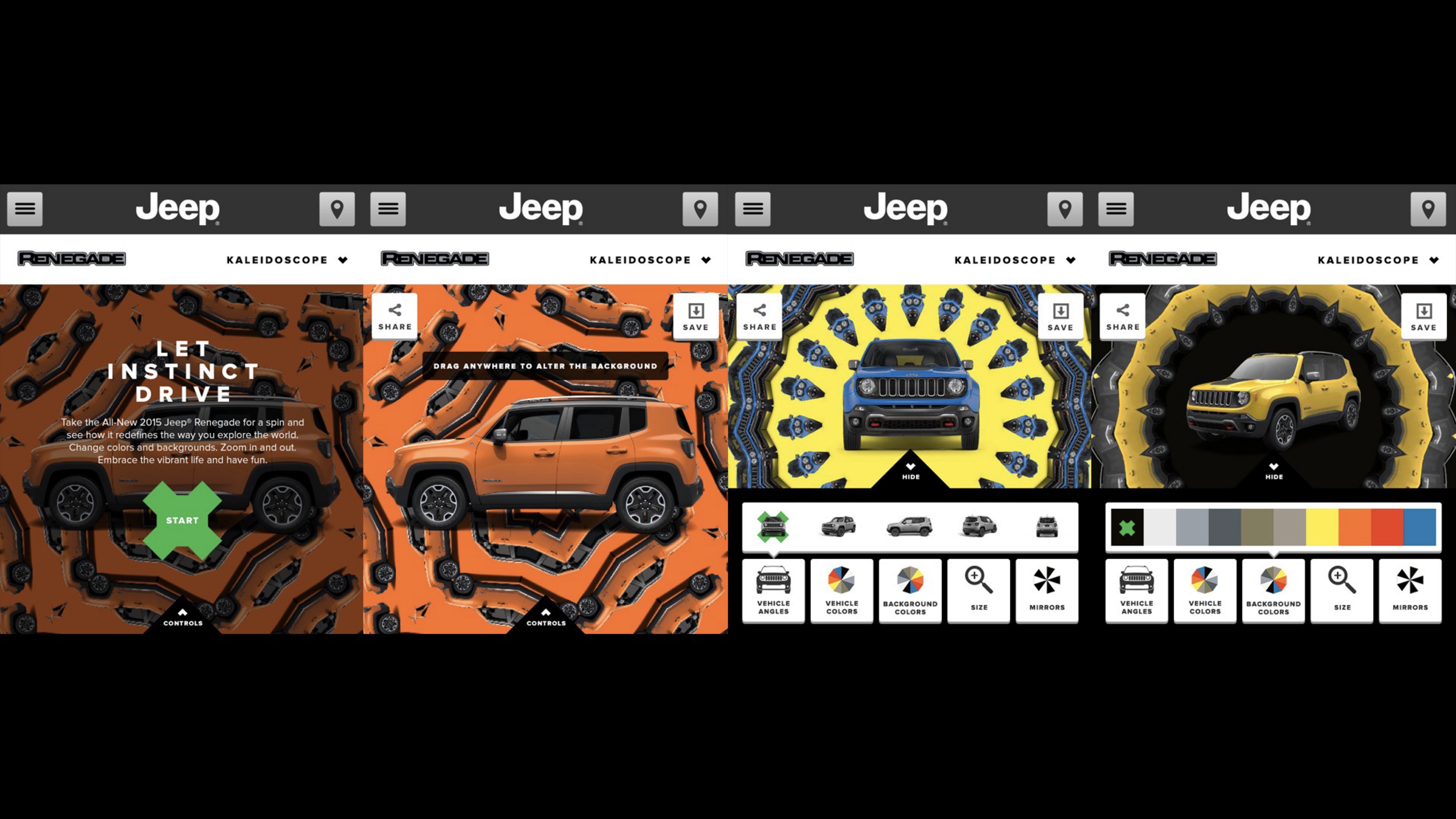 The Jeep® Renegade is the entry-level Jeep and is targeted at folks who aspire to being part of the family. To reach them, Jeep used agency and media partners to create the most extensive collection of content they'd every produced for a launch. We created a portal that not only housed the content but also facilitated the spirit of exploration. It included profiles of extreme sports athletes, musicians, urban scene setters and a new way to show off the vehicle – the Renegade Kaleidoscope. lt allowed potential owners to play with angles, colours, backgrounds and the number of ‘mirrors’ (or reflections) to give literally millions of potential combinations to save and share with their friends.